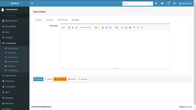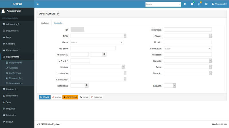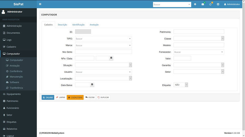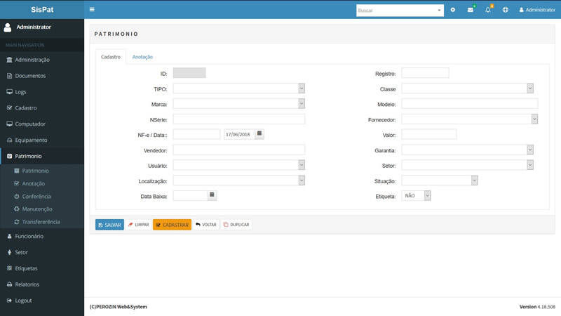 SISTEMA GERENCIAL CONTROLE PATRIMONIO